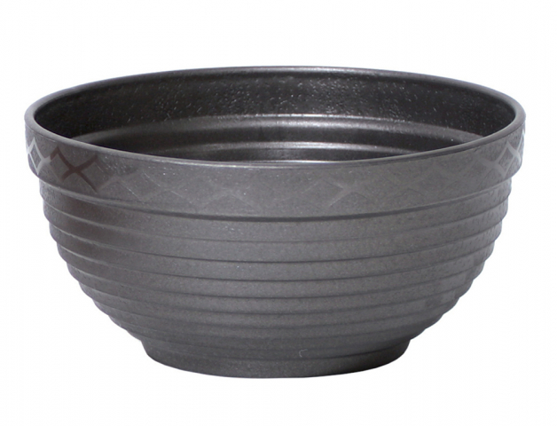 Dotaz na produktPolypropylenová, vysoce odolná matná pruhovaná žardinka. Pruhy jsou cca 0,5 cm široké a jsou za sebou kónicky naskládané. Horní pruh je širší, vyplněn po obvodu kosočtverci navazujícími za sebou. Použivá se zejména v exteriéru na výsadbu rostlin. Barva: antracit. Průměr: 23 cm, výška: 10 cm.