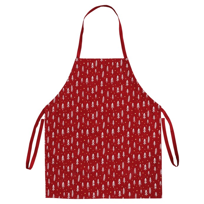 Dotaz na produktBuďte i v kuchyni naplno pohlceni vánoční atmosférou i díky této červené stylové zástěře. Vánoční vzor s bílými stromečky na červeném pozadí a padajícími sněhovými vločkami, přinese každému kulináři neodolatelný sváteční vzhled. Vyrobená ze 100% bavlny, tato zástěra je nejen stylová, ale také praktická a pohodlná při přípravě vánočních pokrmů.