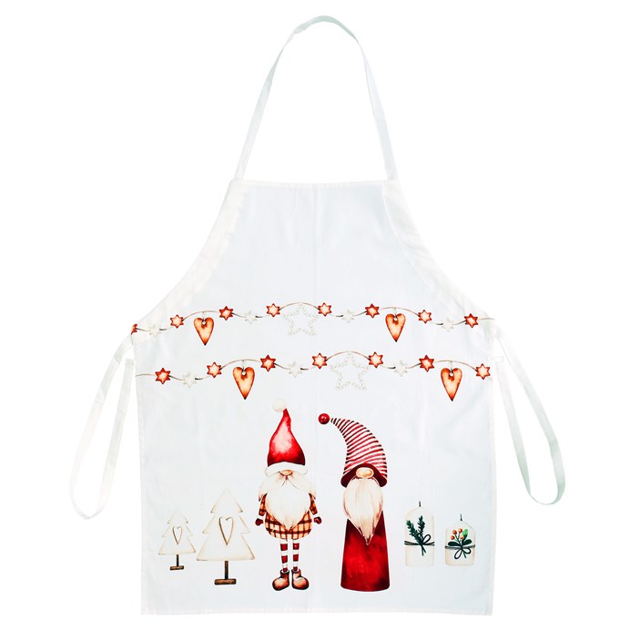Dotaz na produktBuďte i v kuchyni naplno pohlceni vánoční atmosférou i díky této bílé stylové zástěře. Vánoční vzor s červeně oděnými skřítky v obklopení vánočních ozdob, přinese každému kulináři neodolatelný sváteční vzhled. Vyrobená ze 100% bavlny, tato zástěra je nejen stylová, ale také praktická a pohodlná při přípravě vánočních pokrmů.