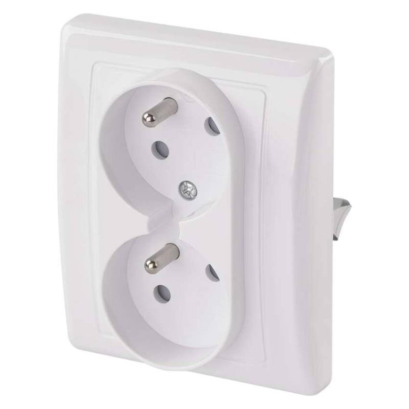Zásuvka klasická, dvojnásobná, bílá