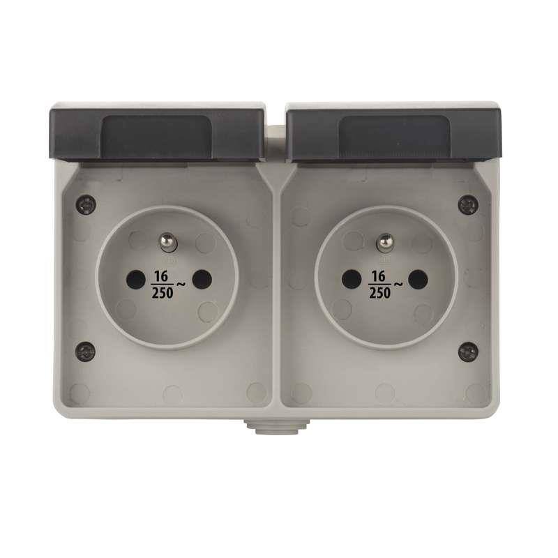 Zásuvka nástěnná dvojitá, 250V / 16A, IP44