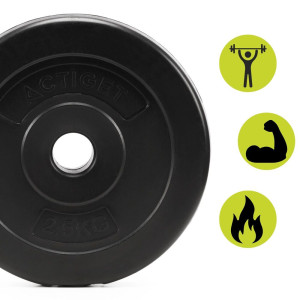Kompozitní kotouč na činky pro silový trénink. Kompozitní materiál pro vysokou odolnost. Tvrzený PP plášť s cementovou výplní pro pevnost a stabilitu. Hmotnost 2,5 kg umožňuje snadné navyšování zátěže a přizpůsobení tréninku podle úrovně cvičence. Vhodný pro domácí i klubové cvičení. Perfektní pro tyče průměru 30 mm.