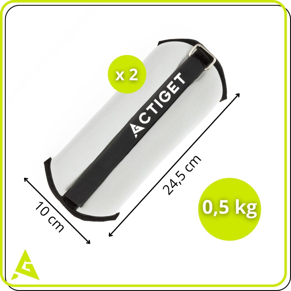 Závaží na ruce a nohy 2x0,5 kg neopren ACTIGET ACT0127 šedé je vhodné pro začátečníky, seniory i rehabilitační cvičení. Hmotnost 2x0,5 kg zvyšuje zvyšuje intenzitu pohybu při chůzi, běhu nebo domácím tréninku bez nadměrného zatížení kloubů. Závaží na ruce a nohy lze snadno upevnit na zápěstí i kotníky a podpořit tak přirozené zapojení svalů.