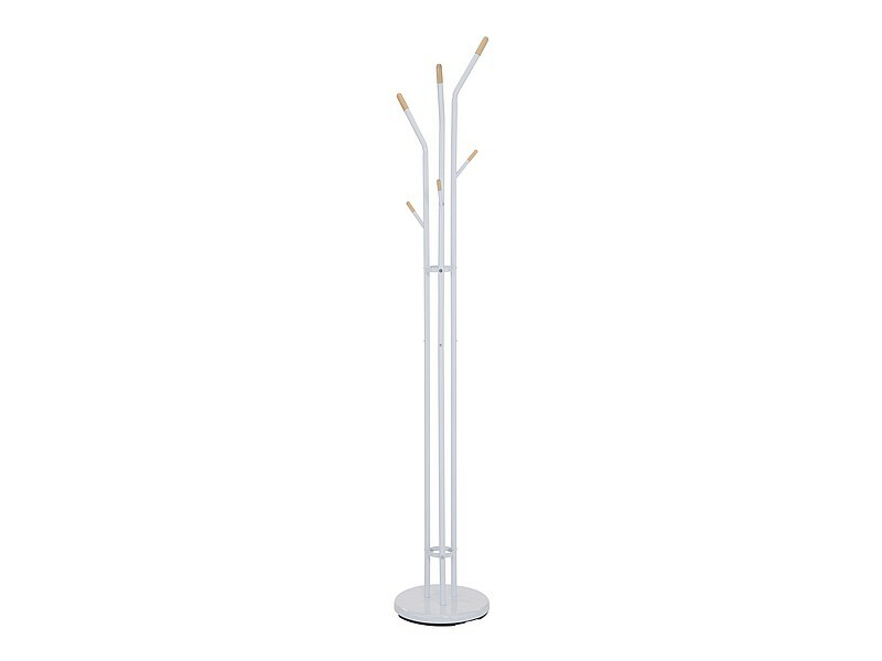 Dotaz na produkt Na splátky ještě dnesVěšák, materiál: kov + dřevo, barva: bílá + buk, průměr podstavce 30 cm