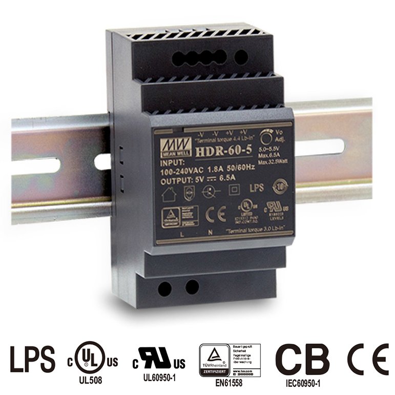 Modelová řada HDR představuje ekonomickou a prostorově nenáročnou variantu napájecích zdrojů pro DIN lištu. Verze HDR-60-15 nabízí výkon 60 W, spínaný výstup a splňuje požadavky norem EN61000-3-2 Class A, IEC60950-1 i UL508. Díky minimálnímu příkonu bez zátěže pod 0,3 W šetří energii i v pohotovostním režimu. Ideální volba pro aplikace v oblasti automatizace budov, řízení výroby nebo u elektromechanických zařízení.