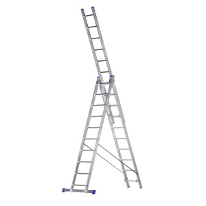 Dotaz na produkt Na splátky ještě dnesŽebřík Al, univerzální, 3dílný, 10 příček, 2,69 / 5,81 m, VHR H 3x10, nosnost 150 kg, ELKOP.