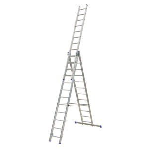 Dotaz na produkt Na splátky ještě dnesŽebřík Al, univerzální, 3dílný, 12 příček, 3,27 / 7,43 m, VHR P 3x12, nosnost 150 kg, ELKOP.