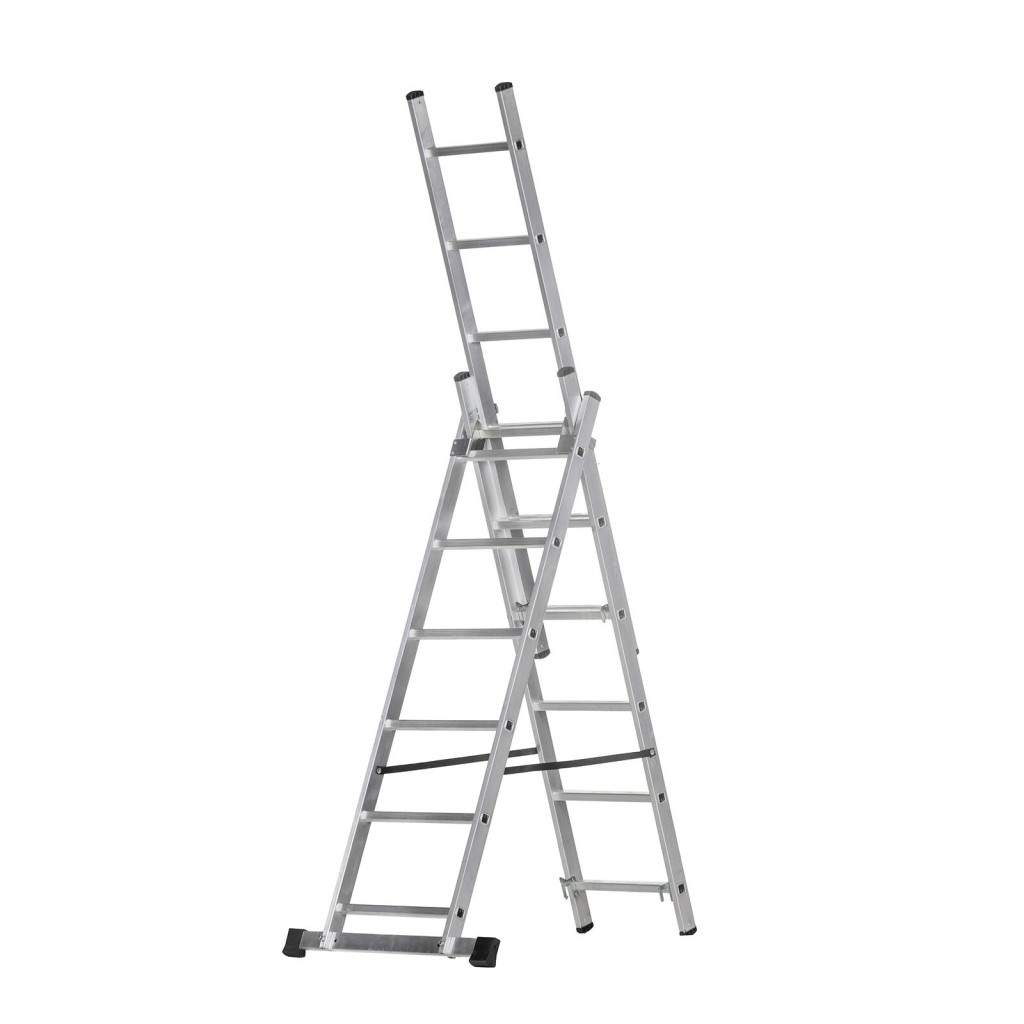 Dotaz na produkt Na splátky ještě dnesŽebřík Al, univerzální, 3dílný, 6 příček, 1,65 / 3,21 m, VHR SSTS 3x6, nosnost 150 kg, ELKOP.