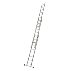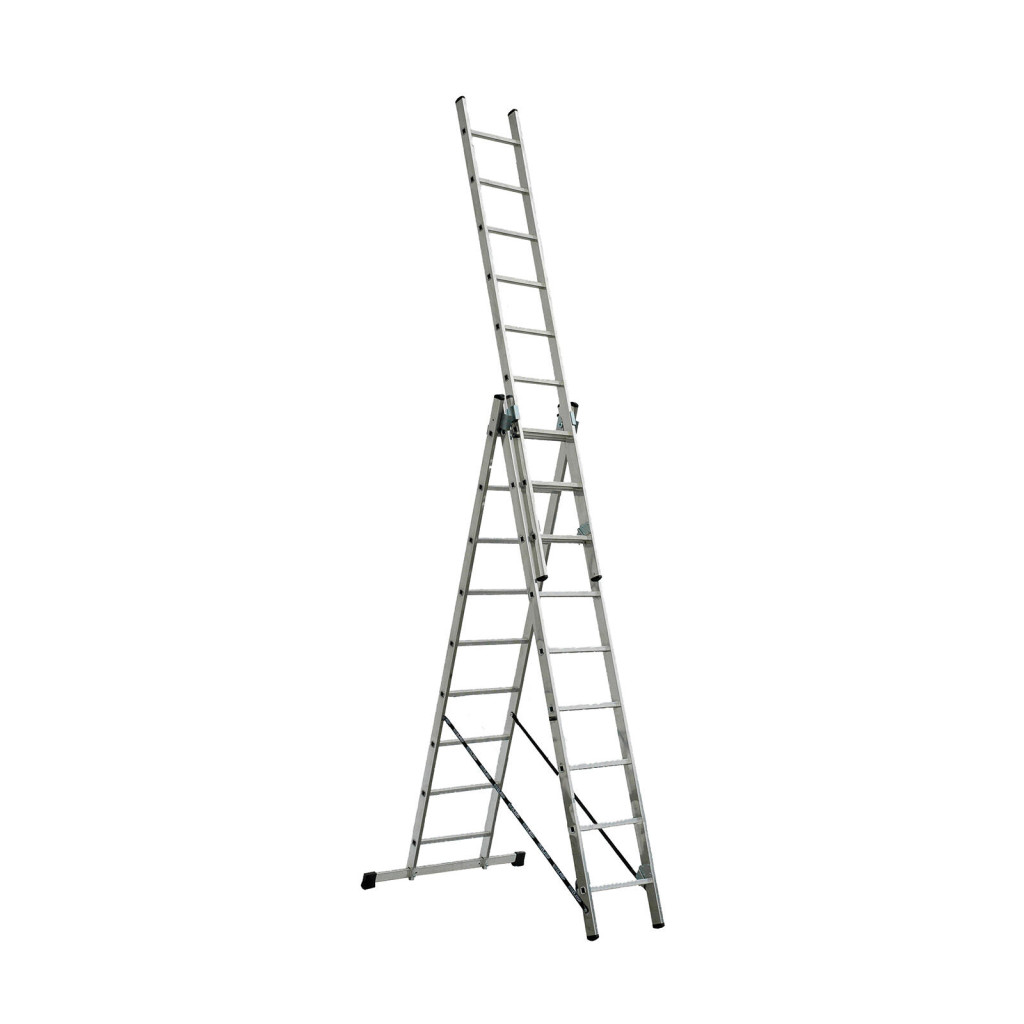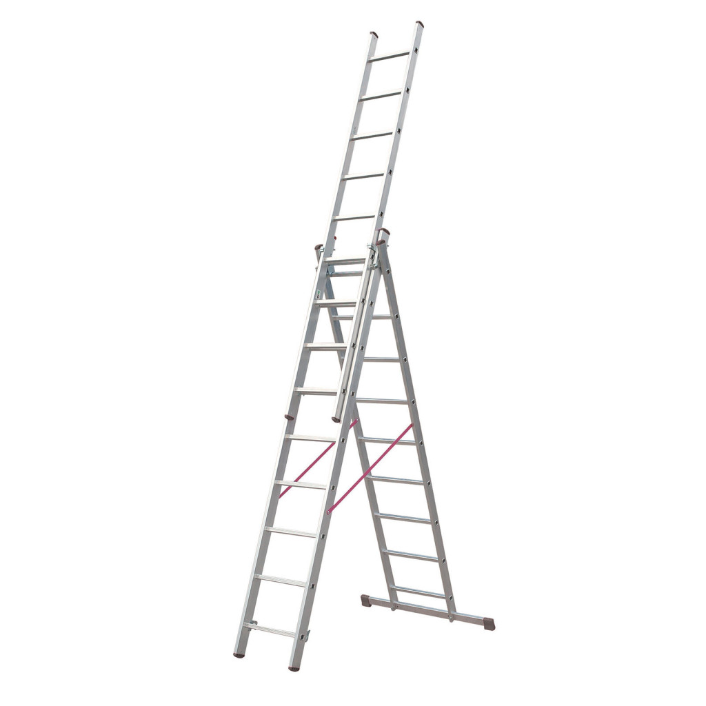 Dotaz na produkt Na splátky ještě dnesŽebřík Al, univerzální, 3dílný, 9 příček, 2,43 / 5,29 m, VHR T 3x9, nosnost 150 kg, ELKOP.