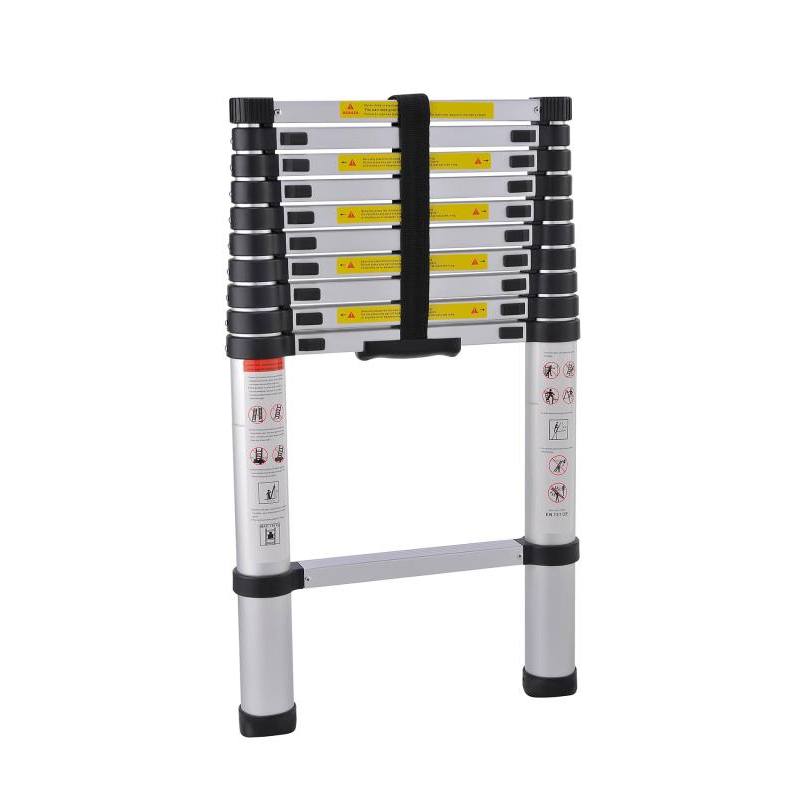 • Teleskopický žebřík je původně vyvinutý pro profesionály, je špičkový model, který se vyznačuje dostatečně pevnou a odolnou konstrukcí, díky systému duralových profilů. Na jeho konstrukci byly využity lehké hliníkové materiály, které snižují jeho celkovou hmotnost a zároveň zabezpečují složení žebříku do minimální úložné velikosti.