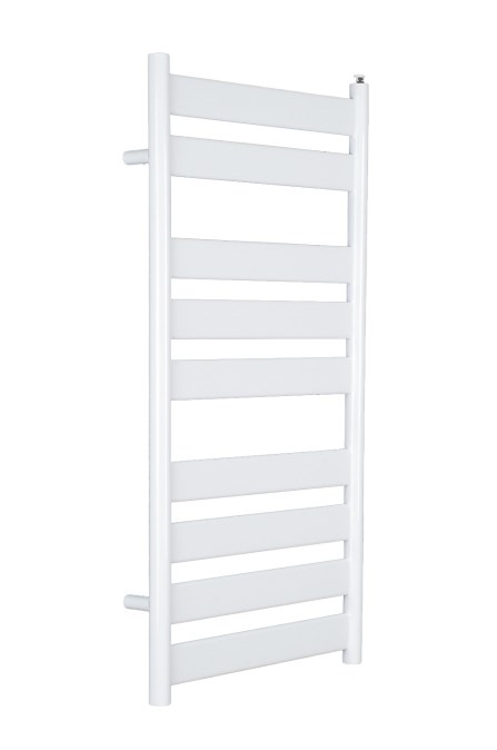 - nenápadné kovové konzole, skryté za svislými sběrnými trubkami nebrání zavěšení ručníků