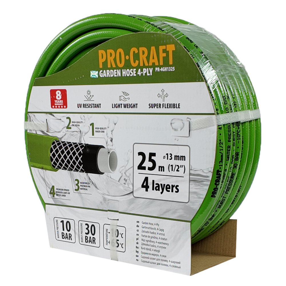 Zahradní hadice Procraft PR-4GH1325 je zkrátka spolehlivým a odolným pomocníkem pro každého zahrádkáře, který ocení dlouhou životnost a bezstarostné používání