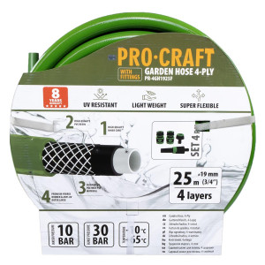 Zahradní hadice Procraft PR-4GH1925F je zkrátka spolehlivým a odolným pomocníkem pro každého zahrádkáře, který ocení dlouhou životnost a bezstarostné používání.