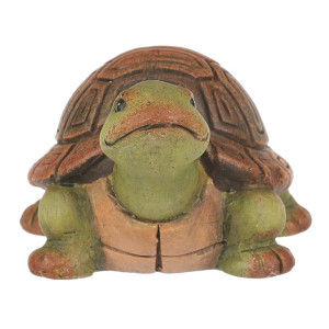 Dotaz na produktKeramická figurka želvy bude úžasným oživením vaší zahrady, terasy, pergoly nebo jiného vhodného prostoru. Její příjemný barevný design laděný do odstínů zelené (tělo želvy) a hnědé (krunýř) zajišťuje, že vaše zahrada získá příjemný dekorativní prvek, který dokonale splyne s prostředím. Želva svým milým provedením upoutá pozornost a přinese do prostoru veselejší atmosféru. Ať už ji postavíte mezi květiny, na trávník nebo na viditelné místo terasy, bude vždy vypadat skvěle. Právě veselý a hravý výraz této zvířecí sošky bude inspirací pro vás i všechny návštěvníky pro vytvoření místa se skutečně pozitivní atmosférou.
