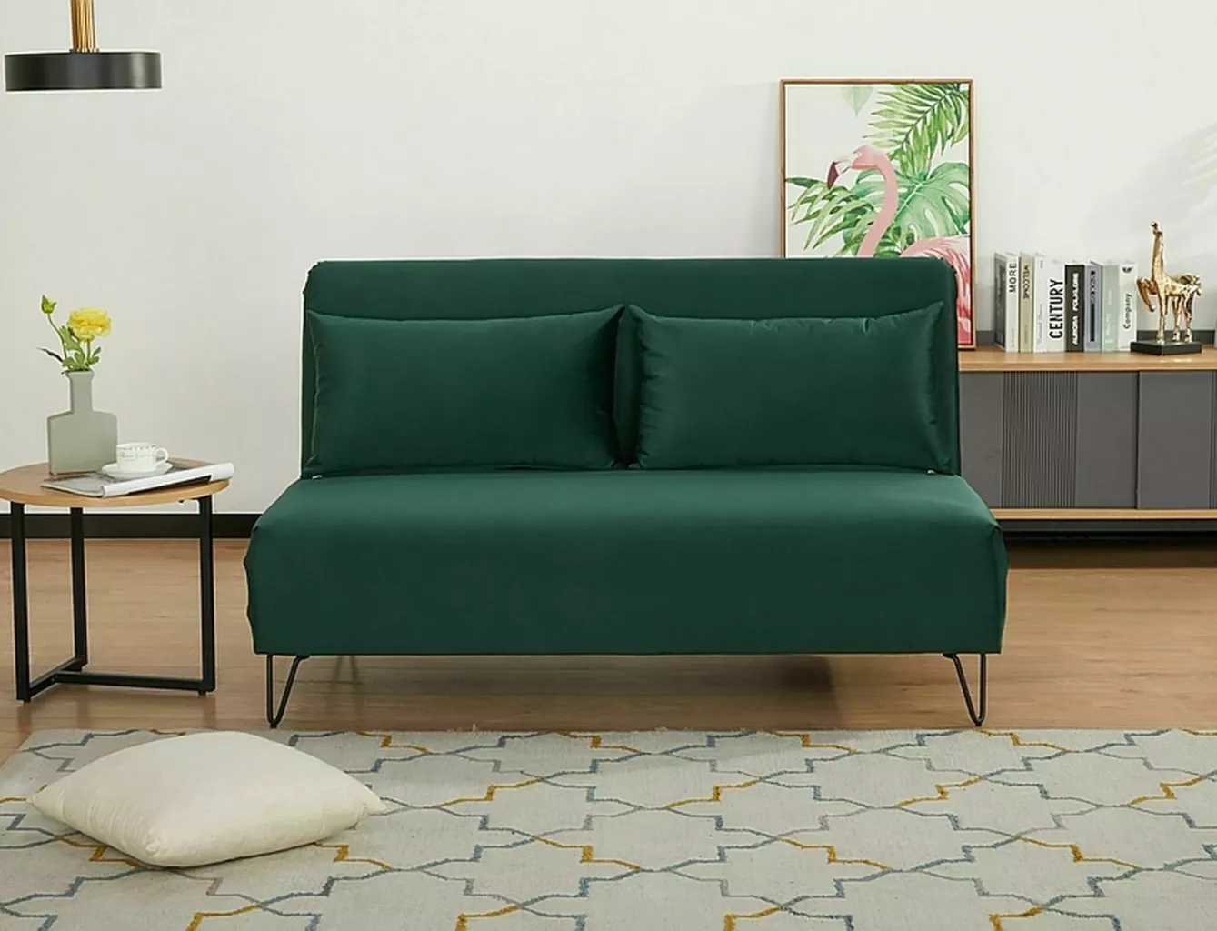 Dotaz na produkt Na splátky ještě dnesrozkládací pohovka, sametová látka: zelená, kohoutek. 189 / kov, barva: černá