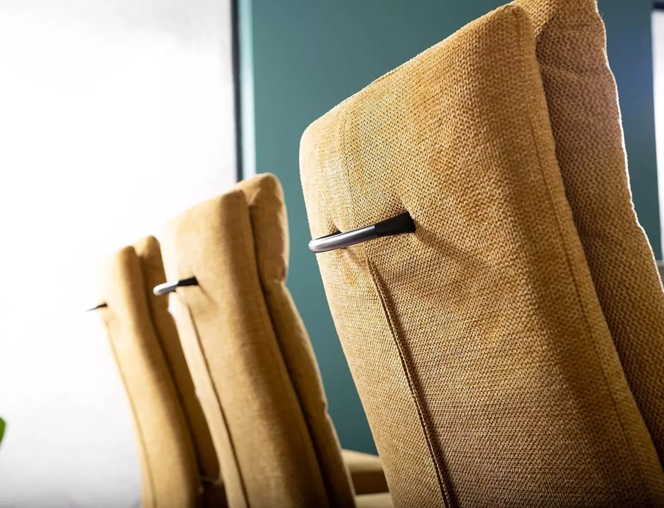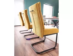 Dotaz na produkt Na splátky ještě dnesŽidle, látka Brego, barva: kari 68 / kov, matná černá. Praktické madlo na zadní straně opěradla usnadňuje přemisťování židle.