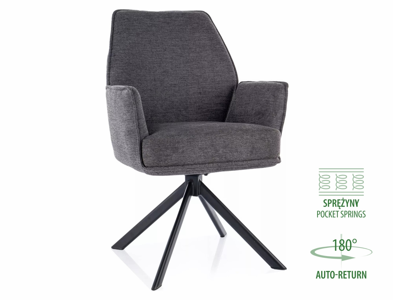 Dotaz na produkt Na splátky ještě dnesŽidle, čalounění: látka Brego, rám: kov, barva: 18 tmavě šedá / matná černá. Funkce automatického návratu - sedák se otáčí o 180 stupňů s funkcí návratu do původní polohy. Taštičkové pružiny v sedáku.