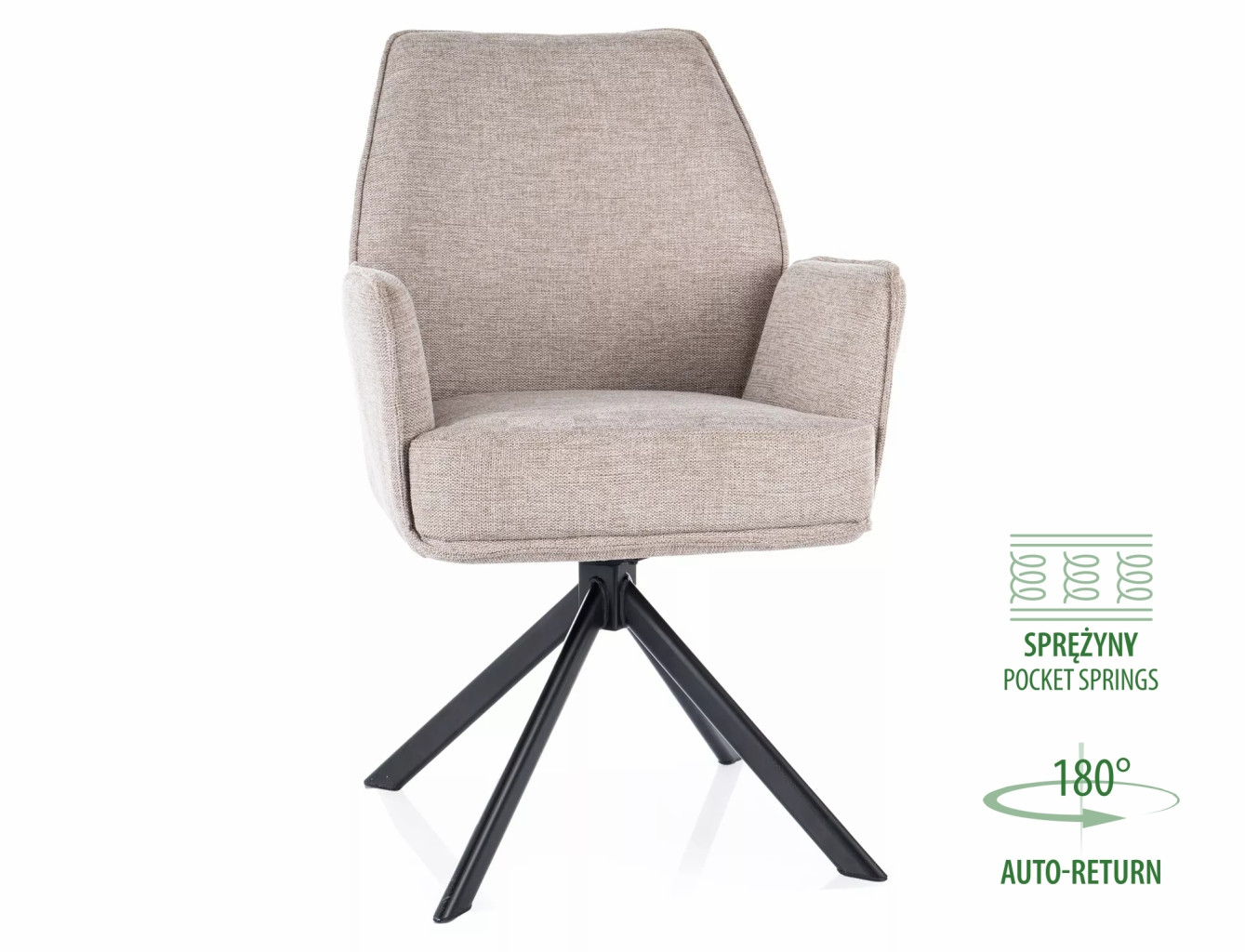 Dotaz na produkt Na splátky ještě dnesŽidle, čalounění: látka Brego, rám: kov, barva: 31 světle béžová / matná černá. Funkce automatického návratu - sedák se otáčí o 180 stupňů s funkcí návratu do původní polohy. Taštičkové pružiny v sedáku.
