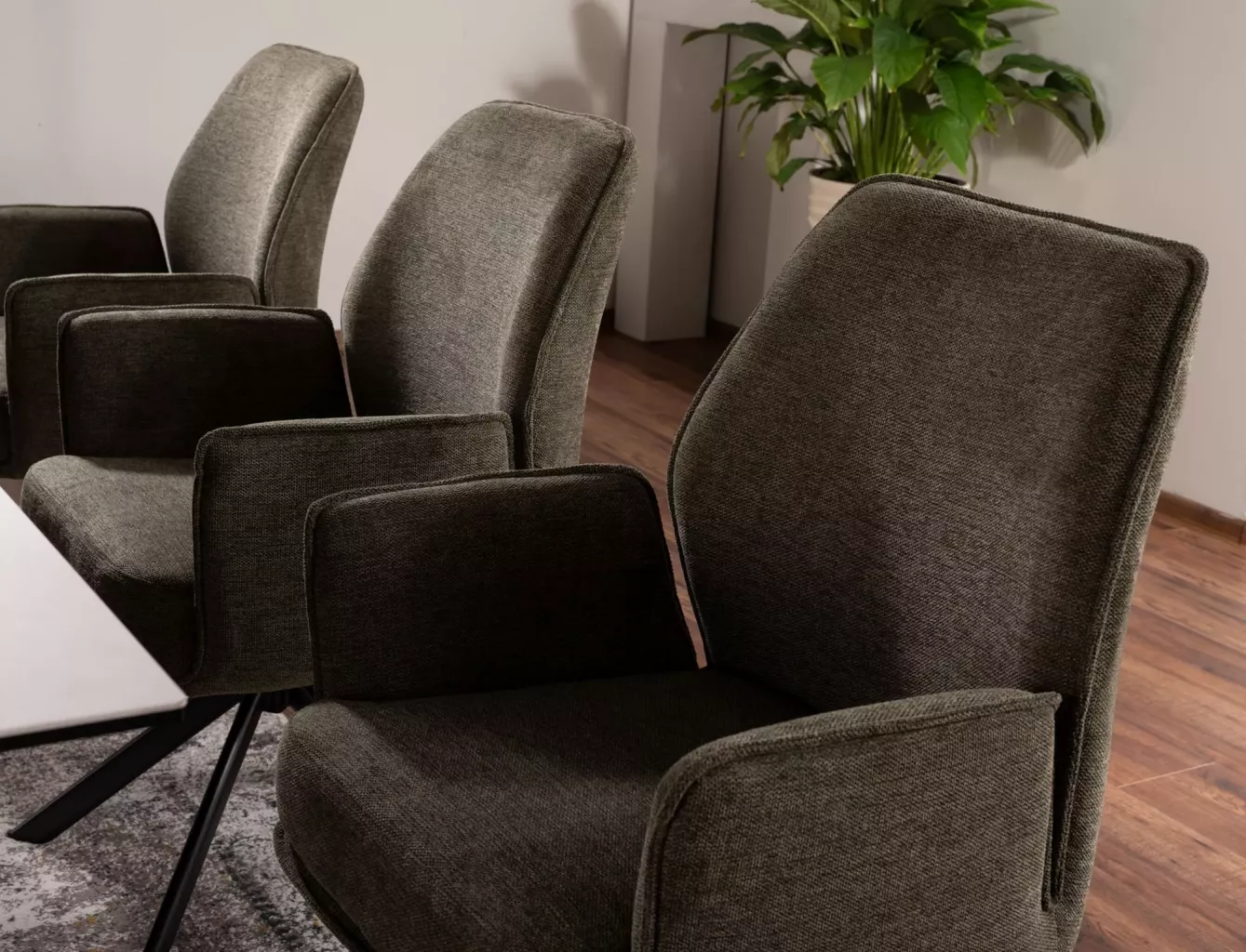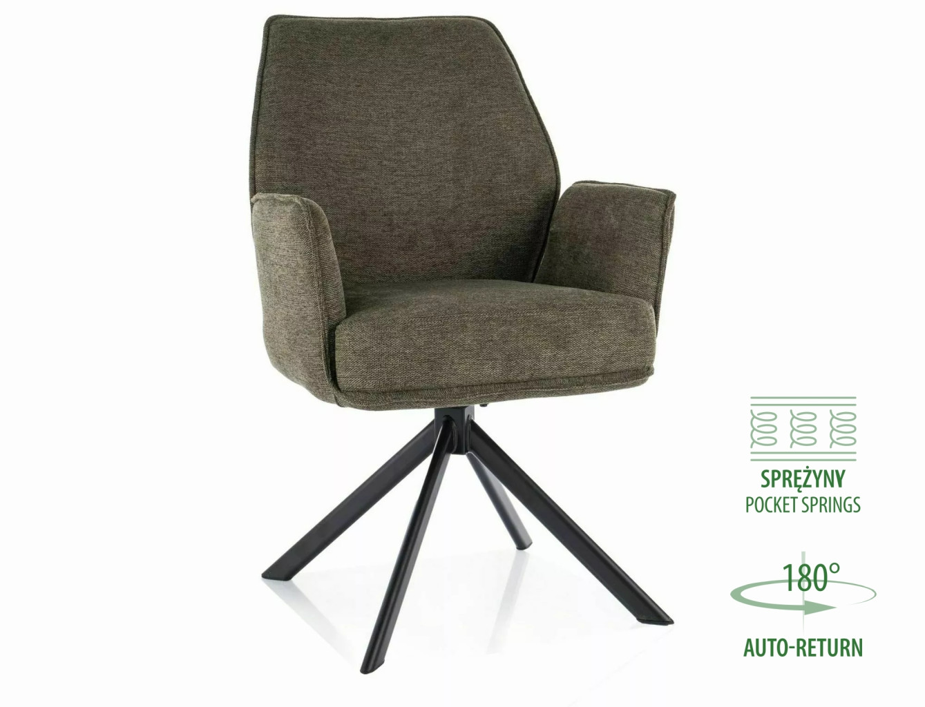 Dotaz na produkt Na splátky ještě dnesŽidle, čalounění: látka Brego, rám: kov, barva: 77 olivově zelená / matná černá. Funkce automatického návratu - sedák se otáčí o 180 stupňů s funkcí návratu do původní polohy. Taštičkové pružiny v sedáku.