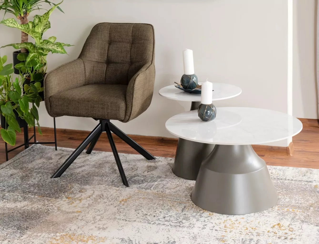 Dotaz na produkt Na splátky ještě dnesŽidle, čalounění: látka Bjorn, rám: kov, barva: 77 olivově zelená / matná černá. Funkce automatického návratu - sedák otočný o 180 stupňů s funkcí návratu. Taštičkové pružiny v sedáku.