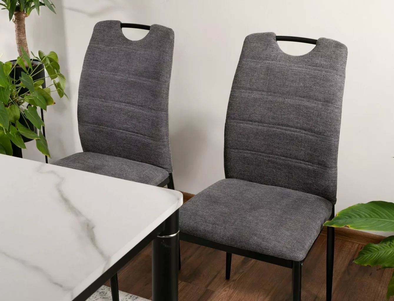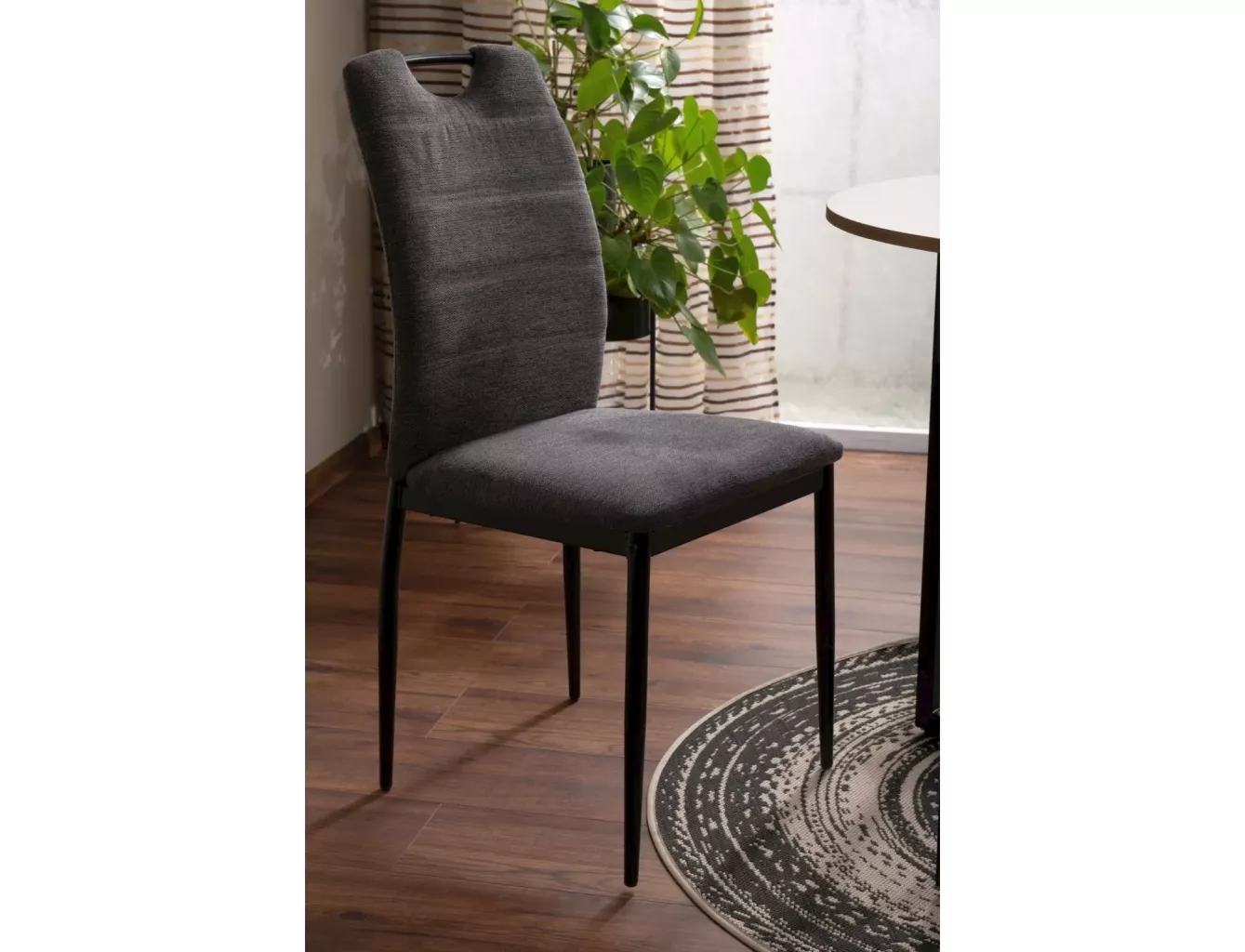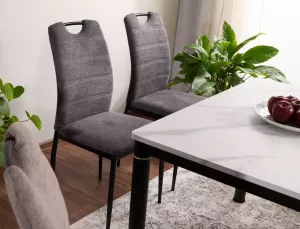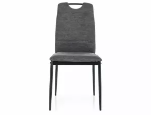 Dotaz na produktŽidle, čalounění: látka Brego, rám: kov, barva: 18 tmavě šedá / matná černá. Madlo na horní straně opěradla.