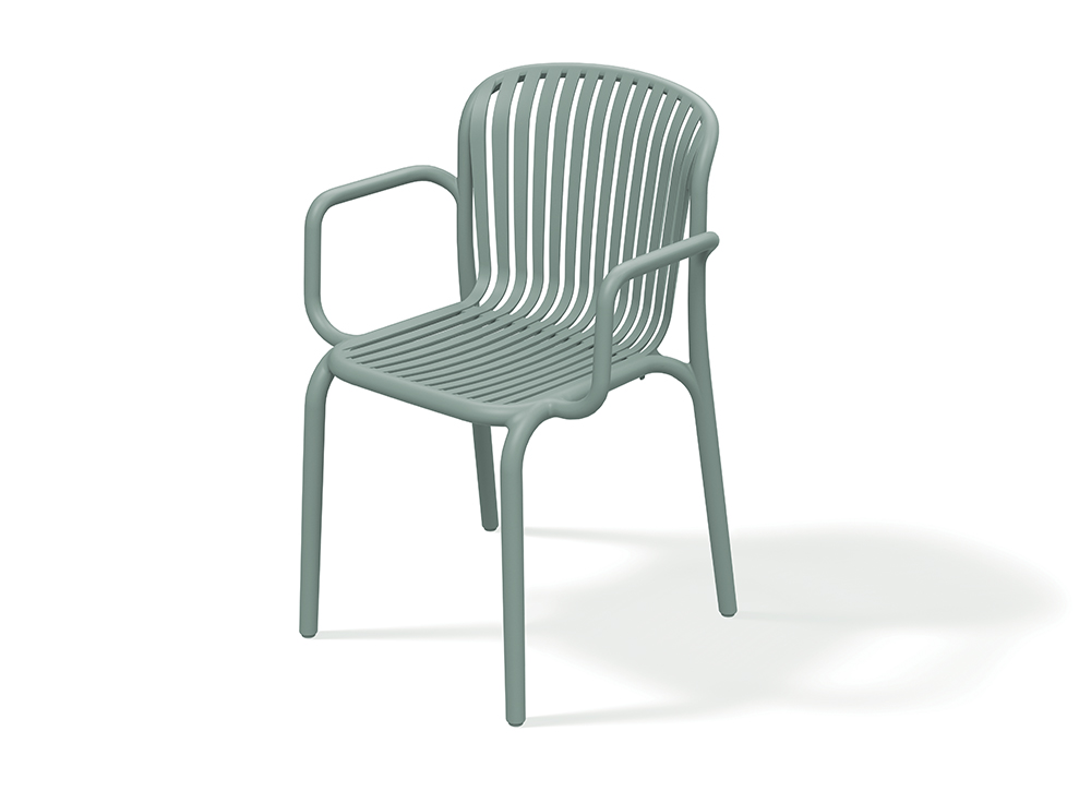 Židle s područkami z kolekce Brene od značky FERNE představuje ideální kombinaci moderního designu a praktického využití. Její čisté linie a vzdušná konstrukce s charakteristickými trojúhelníkovými lamelami dodávají židli lehký, elegantní vzhled a zároveň zajišťují pohodlné sezení.