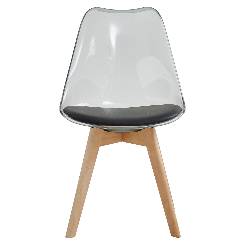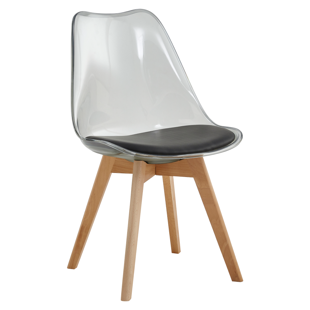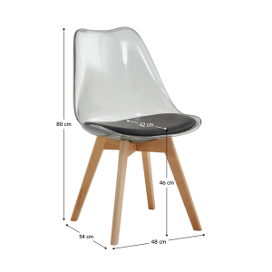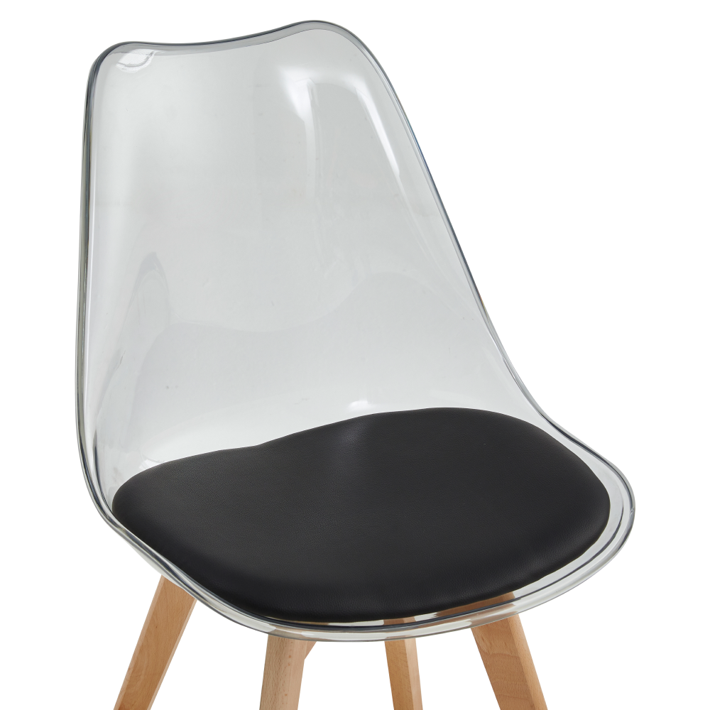 Materiál: akryl/ekokůže/bukové dřevo • Oděruodolnost textilie podle testu Martindale: 100 000 oděrů • Barva: transparentní černá/černá/buk • Rozměry (ŠxHxV): 48x54x80 cm • Výška sedu: 46 cm • Hloubka sedu: 42...