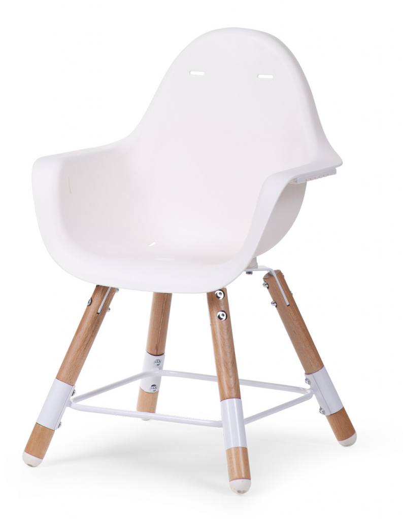 Moderní židlička 2v1 v kombinaci bukového dřeva a bílého plastu nabízí 2 výškové varainty použití - ke stolu standardní výšky 75 cm a k dětskému stolku výšky 50 cm. 5-bodový bezpečnostní pás, odnímatelné madlo a opěrka nohou zaručují pohodlné a bezpečné sezení dítěte v židličce.