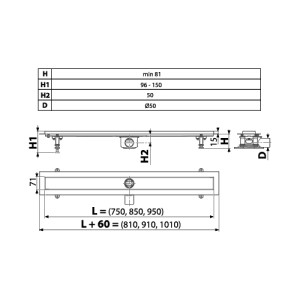 ÚvodStavební materiálVoda, topeníInženýrské sítěOdvodnění a chráničkyŽlab nerezový 950mm komplet s oboustranným roštem, otočný sifon, 50 l/min, st.výška 85mm, TRINNITY
