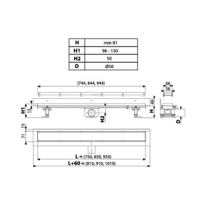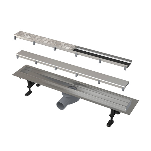 ÚvodStavební materiálVoda, topeníInženýrské sítěOdvodnění a chráničkyŽlab nerezový ke stěně 850mm komplet s oboustranným roštem, otočný sifon, 50 l/min, st.výška 85mm, TRINNITY