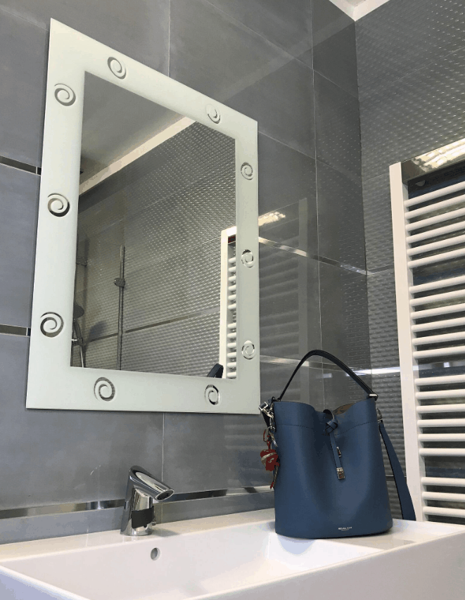 Dotaz na produkt Na splátky ještě dnesZrcadlo s potiskem ve tvaru spirála po obvodu. Potisk zrcadla imituje pískování. Vhodné nejen do koupelen, ale do celého interiéru.