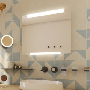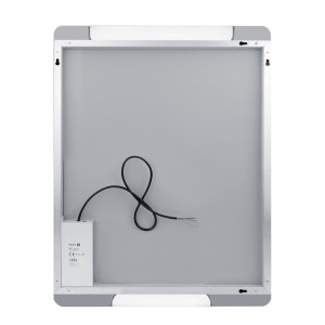 Nová technologie svícení za použití akrylátového skla – plexiglass. Konstrukce je z hliníkového rámu 32x19 mm, sklo zrcadla o tloušťce 5mm. Zrcadlo lze uchytit horizontálně a vertikálně. Připojení 220-240 V. Ochrana IP 44. Bez vypínače. Zapojení do el. rozvodu a zapínání přes vypínač světel v místnosti. LED čipy s vysokým výkonem. Barevná Teplota denní bílá – jasné polední světlo. Životnost LED diod je až 50 000 hodin.