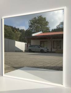 Rám zrcadla je z materiálu hliník