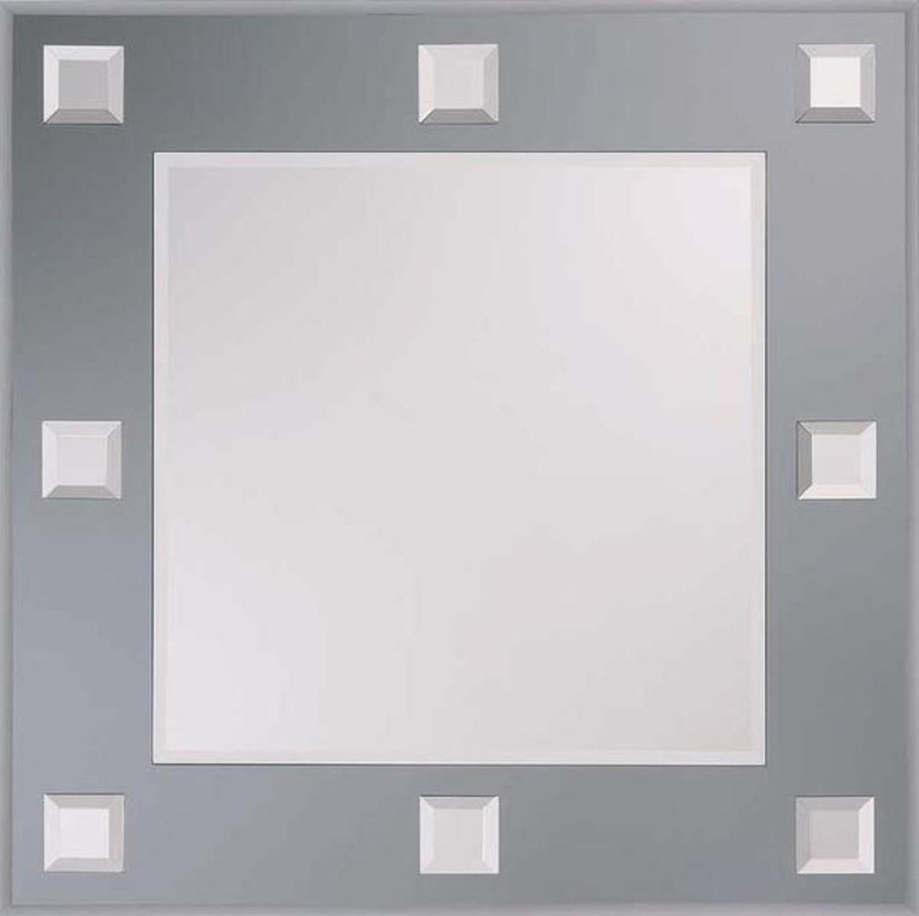 Dotaz na produkt Na splátky ještě dnesElegantní nástěnné zrcadlo MONDO, hranaté, o rozměrech 60x60 cm, ve stříbrné barvě, s designovým fazetovaným okrajem a ozdobnými fazetkami, je zrcadlo Modno vhodné do každé moderní koupelny.