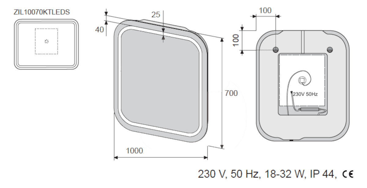 Dotaz na produkt Na splátky ještě dnesZrcadlo do koupelny v rozměrech 100x70 cm s LED osvětlením, senzorovým spínačem a vyhřívanou topnou folií, která brání zamlžení zrcadla - ideální do koupelny. V nabídce také varianta bez vyhřívané topné folie ZIL10070KLEDS.230 V, 50 Hz, 18-32 W, IP 44, 6000K - studená bílá