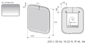 Dotaz na produkt Na splátky ještě dnesZrcadlo do koupelny v rozměrech 120x70 cm s LED osvětlením, senzorovým spínačem. V nabídce také varianta s vyhřívací topnou folií ZIL12070KTLEDS.230 V, 50 Hz, 18-32 W, IP 44, 6000K - studená bílá