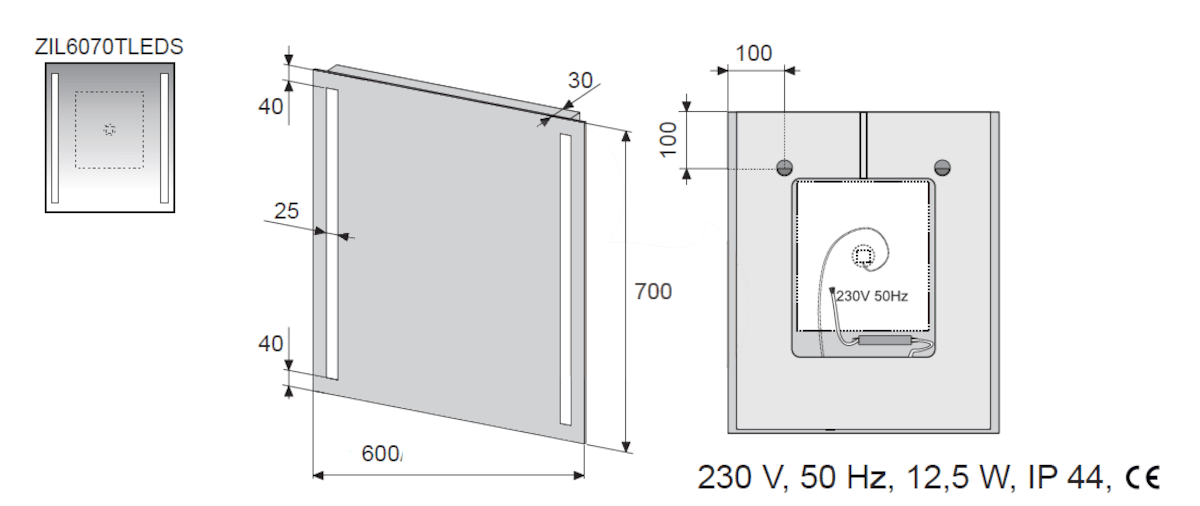 Dotaz na produkt Na splátky ještě dnesZrcadlo do koupelny v rozměrech 60x70 cm s LED osvětlením, senzorovým spínačem a vyhřívanou topnou folií, která brání zamlžení zrcadla, ideální do koupelny. V nabídce také varianta bez vyhřívané topné folie ZIL6070LEDS.230 V, 50 Hz, 12,5 W, IP 44, 6000K - studená bílá