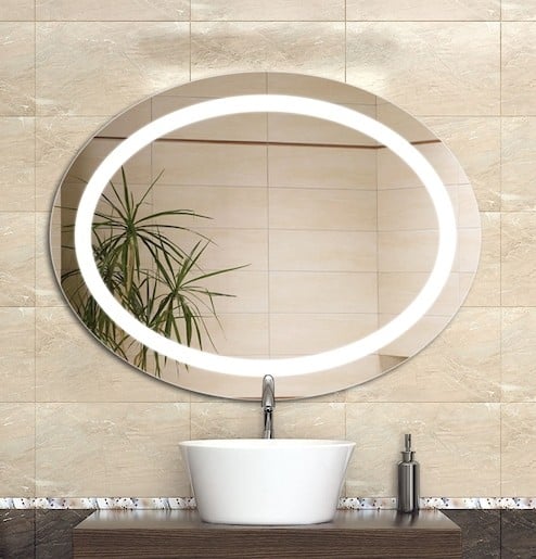 Dotaz na produkt Na splátky ještě dnesOválné zrcadlo s LED osvětlením, které je díky krytí IP55 vhodné i do koupelny, pozdvihne celkový dojem z vybavení vaší koupelny a poslouží také prakticky. Zrcadlo je bez vypínače, Barevná teplota je 6 000 K, světelný tok je 1080 lm, příkon 17 W, krytí IP55.