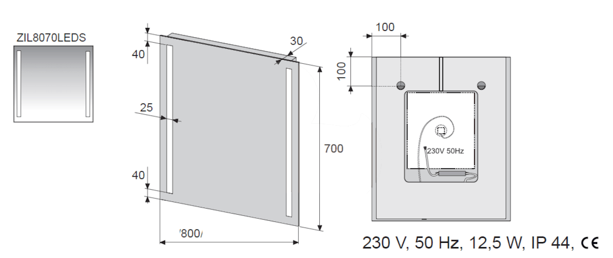 Dotaz na produkt Na splátky ještě dnesZrcadlo do koupelny v rozměrech 80x70 cm s LED osvětlením, senzorovým spínačem. V nabídce také varianta s vyhřívací topnou folií ZIL8070TLEDS.230 V, 50 Hz, 12,5 W, IP 44, 6000K - studená bílá