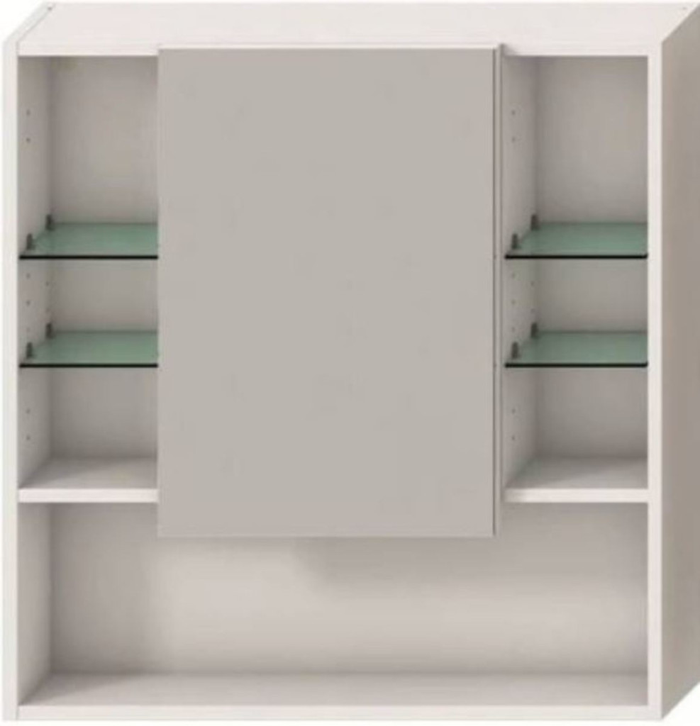 Dotaz na produkt Na splátky ještě dnesElegantní bílá závěsná zrcadlová skříňka se skleněnými poličkami, o velikosti 80x77,5x15,3 cm, je díky svému modernímu designu vhodnou volbou do každé koupelny.
