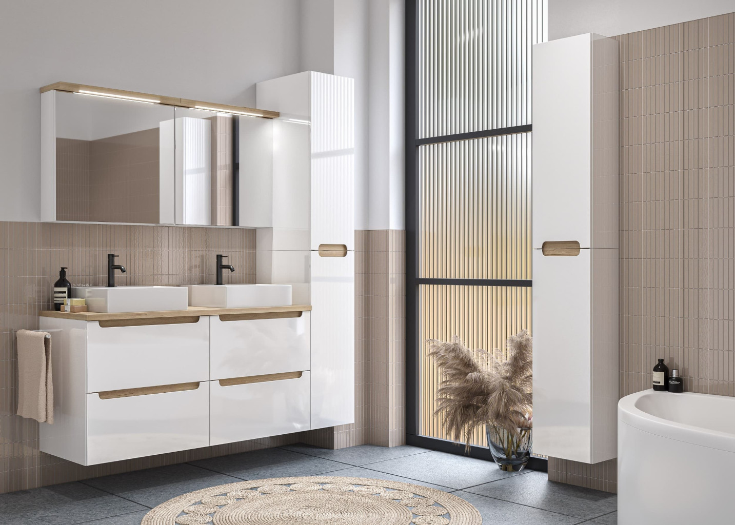 Dotaz na produkt Na splátky ještě dnesZrcadlová skříňka STILLAE06017 s dvířky. Korpus, pokrytý světle vytvrzeným lakem, vypadá dokonale v kombinaci s panelem v dekoru lanýžový buk.