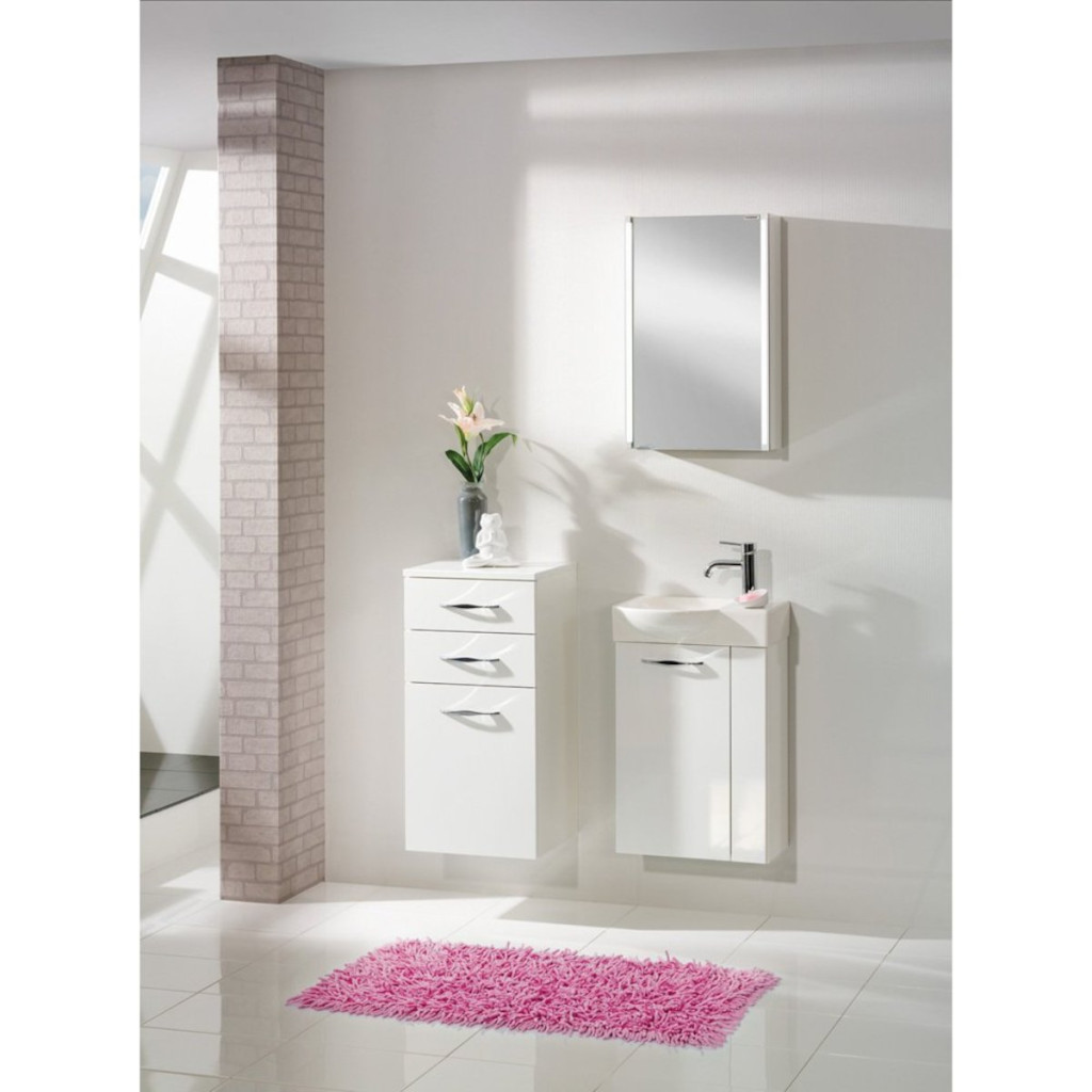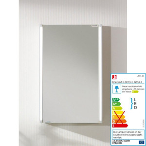 Součástí zrcadlové skříňky jsou dvě LED světla (2x6W). Korpus skříňky: bílý, lesklý. Galerka disponuje zásuvkou.