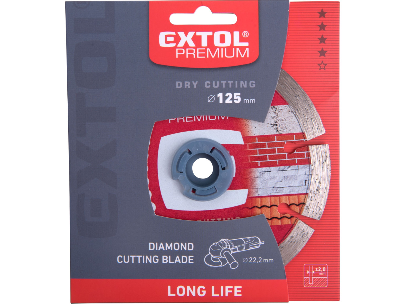 Řada diamantových řezných kotoučů LONG LIFE s prodlouženou životností pro profesionální a poloprofesionální použití. Díky složení diamantové směsi a výšce segmentu mají kotouče až o 50% větší řezný výkon než ostatní Extol Premium kotouče.