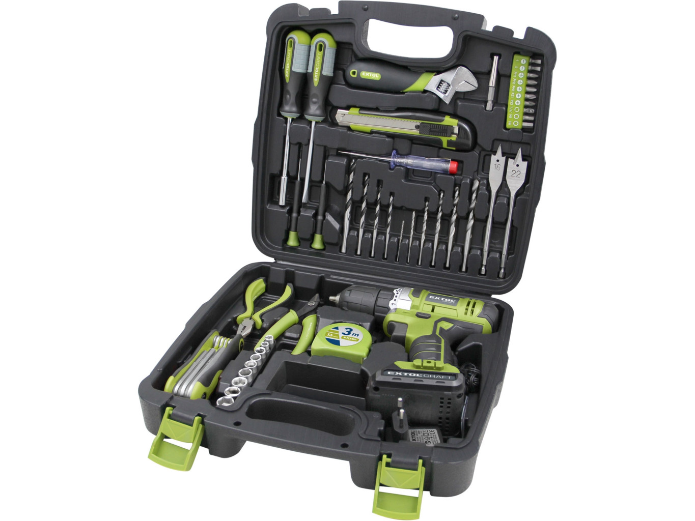 Dotaz na produkt Na splátky ještě dnesPraktická sada pro domácnost obsahující aku vrtací šroubovák s vrtáky a bity a základní nářadí. Lehký vrtací aku šroubovák je určen k dotahování a povolování šroubů či vrutů, dále k vrtání do dřeva, kovu a plastů. Díky Li-ion akumulátoru je možné šroubovák kdykoliv dobíjet, aniž by se tím snižovala kapacita akumulátoru. Li-ion akumulátor ztrácí energii vlivem samovybíjení velmi pomalu a vydrží dlouho nabitý. Tech. parametry baterie 12V Li-ion kapacita baterie 1300mAh otáčky I. 0-400/min, II. 0-1500/min L/P chod ano rychloupínací hlava plastová 3/8" průměr vrtáku 0,8-10mm stupňů utah. momentu 21+vrtání max. utahovací moment 18Nm nabíjení baterie cca 4-5h v kufru ano hmotnost s baterií 1kg Příslušenství vrták do dřeva 16-22mmvrták do kovu 2-3-4-5-6-7mmvrták do zdi 4-5-6-8mmšroubovák hodinářský 50mm - (-)2,5mm, PH00šroubovák (-) 5x100mmšroubovák na hroty 1/4”x100mmhroty 25mm - (-)4-6mm, PH1-2-3, PZ1-2, HEX 4-5mm, adapter 1/4” držák hrotů 60mmhlavice 5-6-7-8-9-10-11-12-13mmnůž ulamovací 18mmzkoušečka 100-250Vkleště 125mm - kombinační, štípacíklíč nastavitelný 150mmimbus - HEX 1,5-2-2,5-3-4-5-6-8mmmetr 3m x 16mm