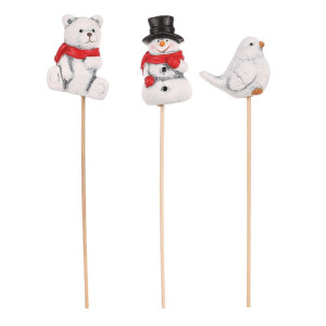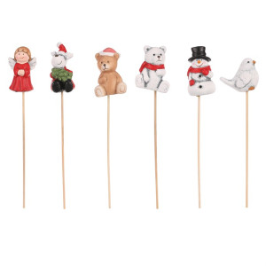 Dotaz na produktRozveselte svou vánoční výzdobu s roztomilými zvířátky a postavičkami na špejli. Najdete tu mix 6 druhů: andílka, hnědého a bílého medvídka, ptáčka, sněhuláka a sobíka. Každá z těchto keramických barevných ozdob na zápichu přinese do vaší vánoční výzdoby zábavu a radost. Umístěte je zabodnutím do polystyrenové desky, věnců, květináče nebo kamkoliv jinam, kde si přejete dokonale rozveselit atmosféru.