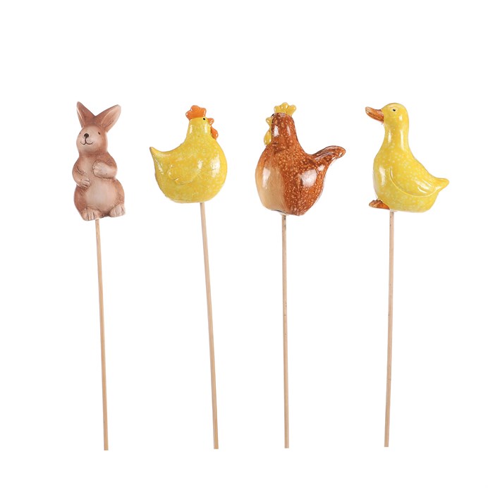 Dotaz na produktKeramická zvířátka na špejli přidají vašim truhlíkům, květníkům i záhonkům hravou atmosféru. Mix 4 druhů zahrnuje zajíčka, kačenku a dvě slepičky, které dokonale doplní zejména jarní a velikonoční výzdobu.