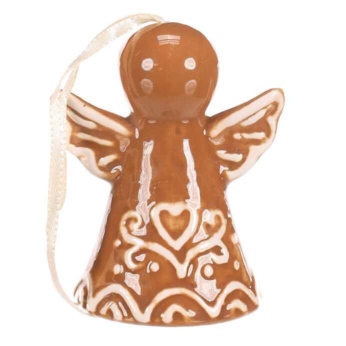 Dotaz na produktZávěsný vánoční zvoneček ve tvaru anděla vypadá jako sladká perníková pochoutka. Jeho červená „poleva“ s jemnými bílými ornamenty dodává dekoraci slavnostní a hravý vzhled. Perfektní doplněk na vánoční stromek nebo jako doplněk sváteční výzdoby v interiéru.