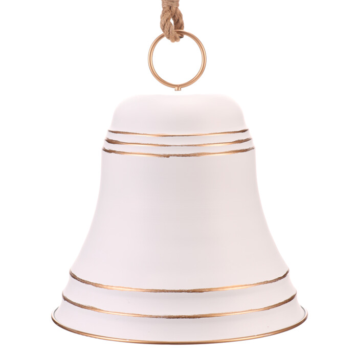 Dotaz na produkt Na splátky ještě dnesVelký kovový zvonek, v bílé barvě jako závěsná ozdoba, upoutá pozornost všude, kde se objeví. Díky svým obřím rozměrům není vhodný na klasický vánoční stromeček, neboť by jeho větvičky nápor tíhy nevydržely. Skvěle se ale hodí jako samostatná dekorace na stůl, podlahu, stěnu, nebo zavěšená ze stropu, případně na vzrostlý strom venku. Ideální pro vytvoření působivé sváteční atmosféry s dominantním dekoračním prvkem, který nikdo nepřehlédne.