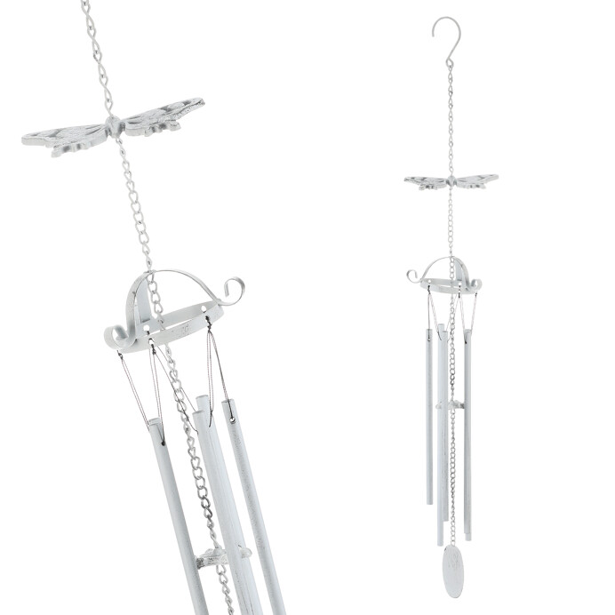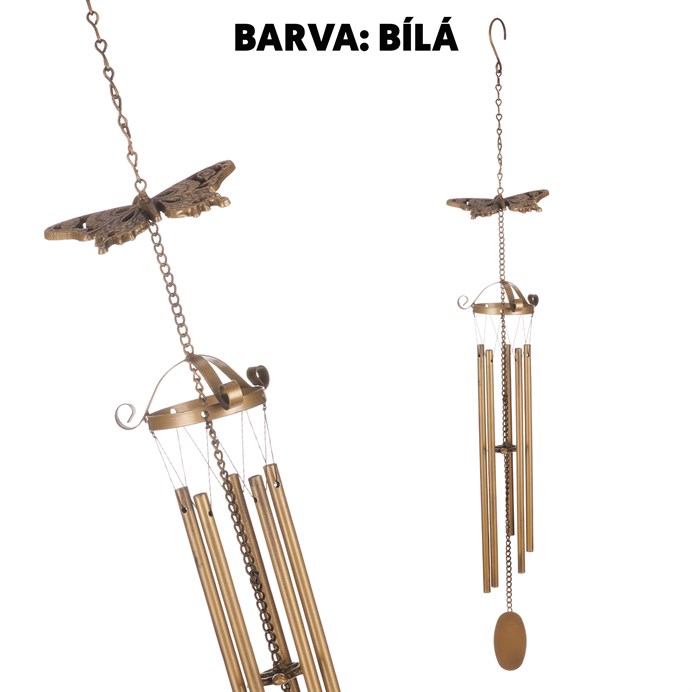 Dotaz na produktKovová zvonkohra v bílém odstínu je doplněna o dekorativního motýla, který přidává jemný přírodní prvek. Zvonkohra je tvořena několika kovovými trubkami zavěšenými na řetízku a tenkých provázcích, které při pohybu vytvářejí příjemný zvukový efekt. Díky háčku v horní části je snadno zavěsitelná na terasu, balkon nebo do interiéru. Je vhodná pro vytvoření klidné atmosféry a vizuálního oživení prostoru.